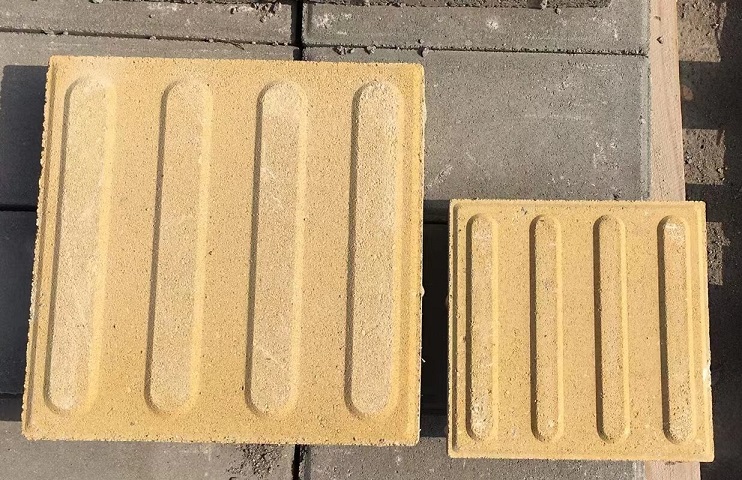 盲道砖介绍:是为盲人安全出行提供的行路方便道路设施。一般由三类砖铺就,一类是条形方向引路砖,引导盲人放心前行;一类是带有圆点的提示砖,提示盲人前面有障碍;另一类是盲道危险引路砖,圆点较大。盲道砖使用场合:主要用于城市道路及火车站、汽车站、地铁站台、城际铁路,人行道上的铺设,它是残疾人安全指引行走无障碍的设施。